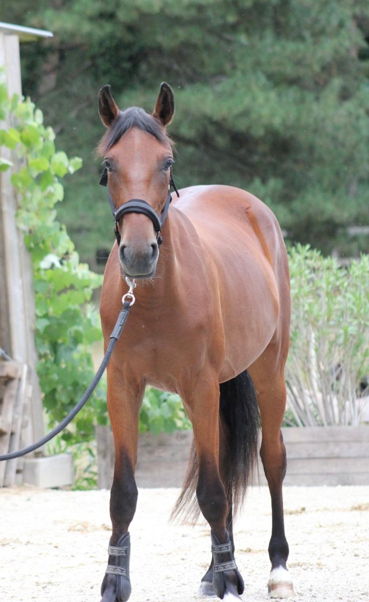 Pré-débourrée sous la selle aux trois allures + initiation attelage réussie.