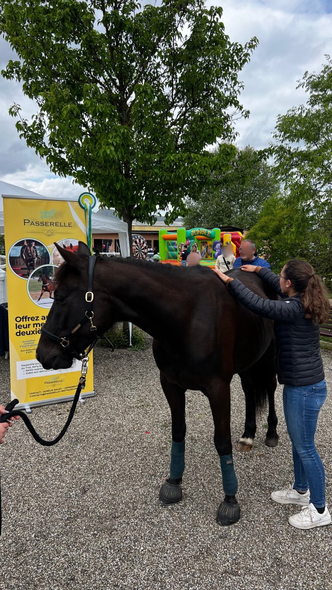 Après avoir assisté à l'assemblée générale du GETSO et animé une présentation de l'association auprès des éleveurs du Sud Ouest, l'association Passerelle est présente ce 13 avril pour la journée Race & Care à l'hippodrome d'Agen avec un trotteur reconverti : Jady Blue.